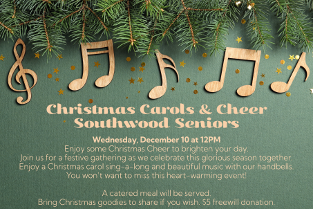 Enjoy some Christmas Cheer to brighten your day. Join us for a festive gathering as we celebrate this glorious season together. Enjoy a Christmas carol sing-a-long and beautiful music with our handbells. You won’t want to miss this heart-warming event!